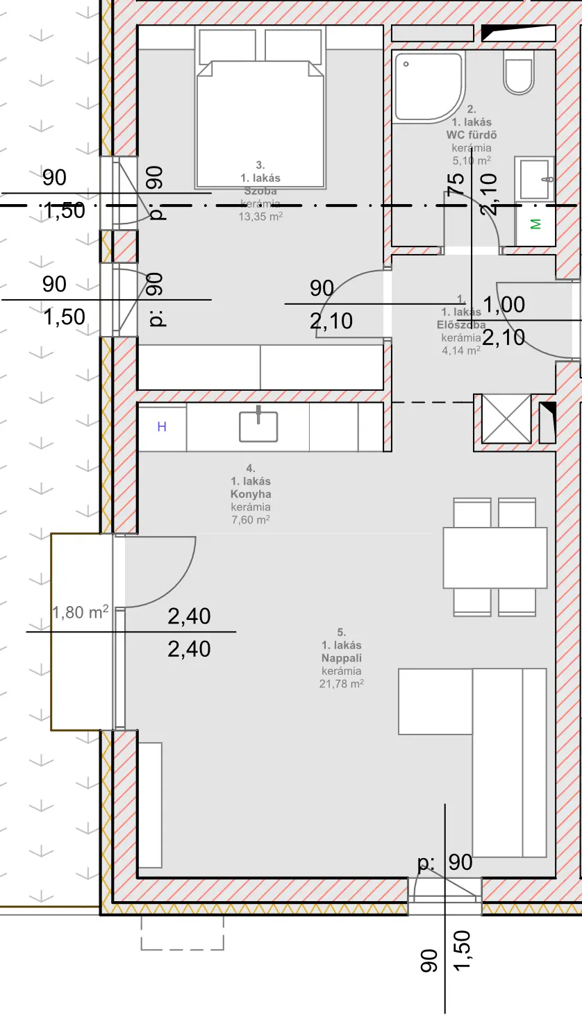 | 0. szint | Nappali | 21,78 ㎡ |