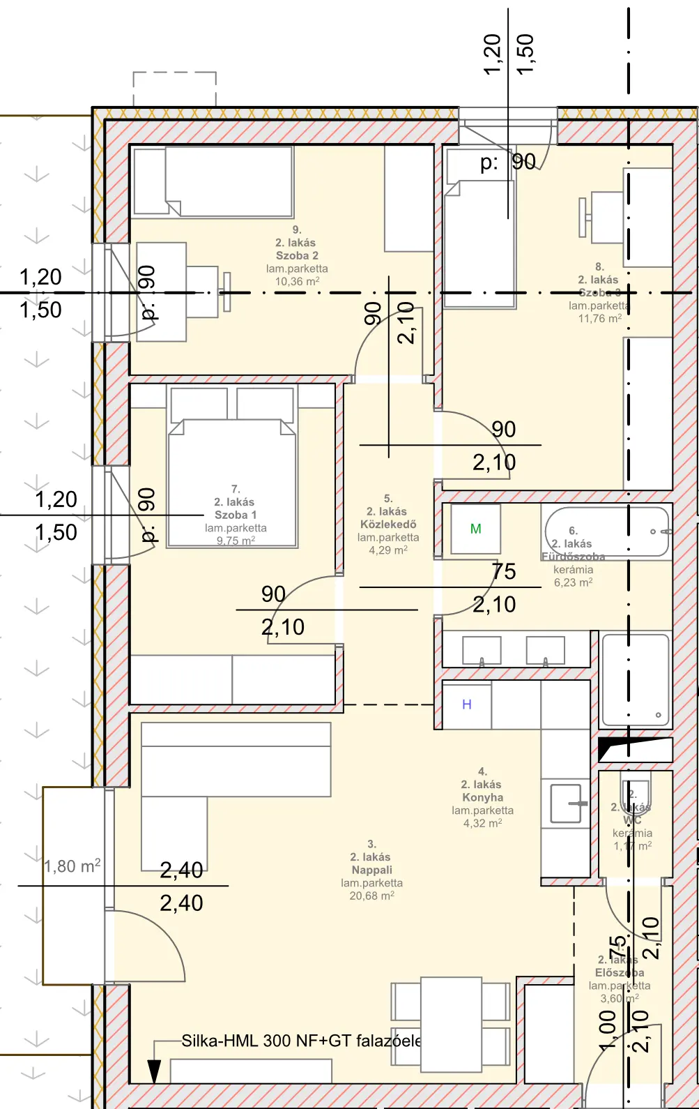 | 0. szint | Nappali | 20,68 ㎡ |