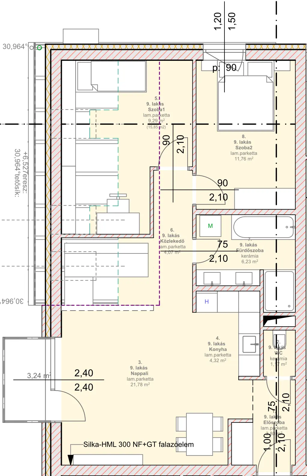 | 2. szint | Fürdőszoba | 6,23 ㎡ |